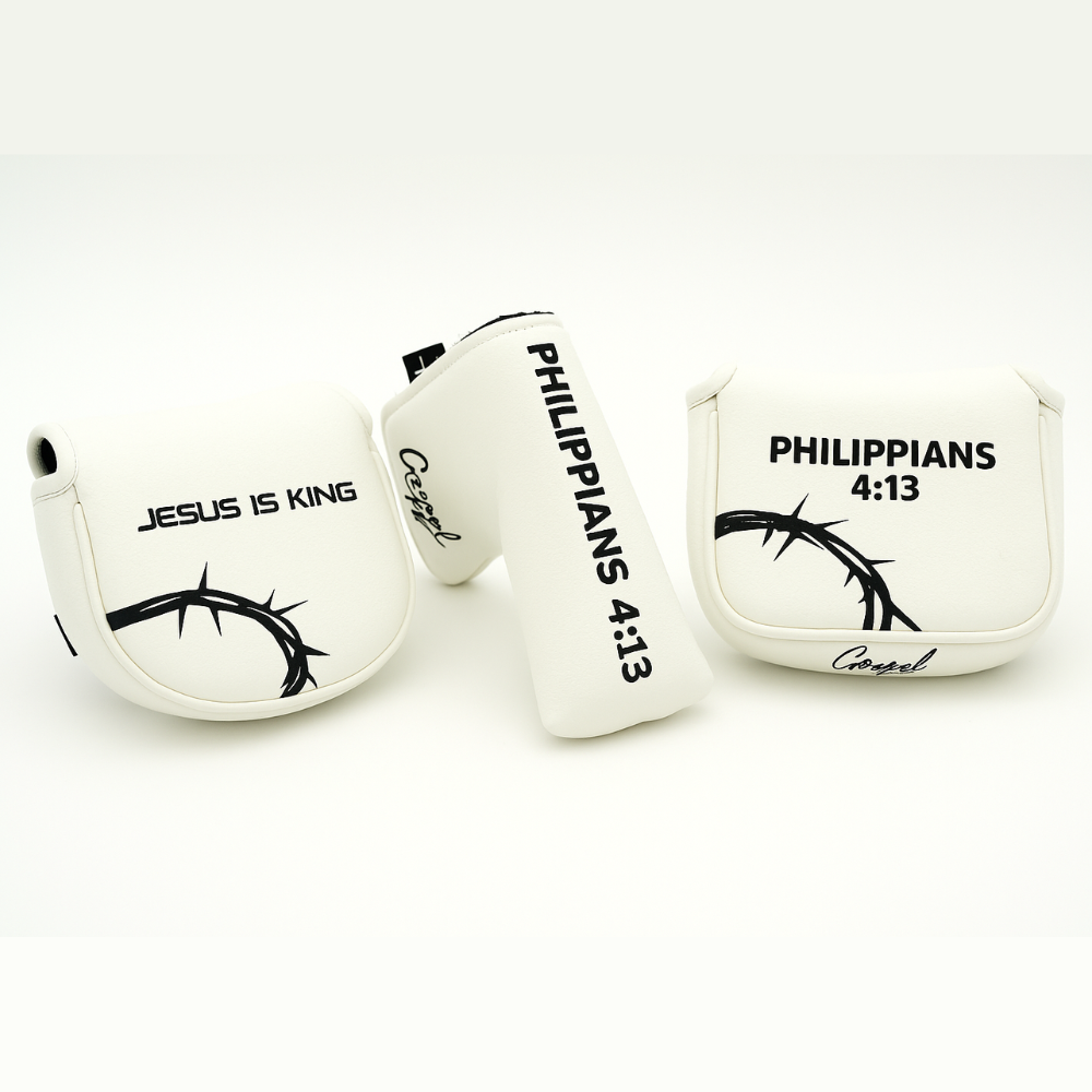 Protect your putter while sharing your faith with the Gospel Golf White Putter Covers. Designed for golfers who want more than just performance, these premium headcovers combine luxury materials with powerful reminders of faith. Each cover proudly features Philippians 4:13 or the declaration that Jesus is King, making it a bold statement both on and off the green.